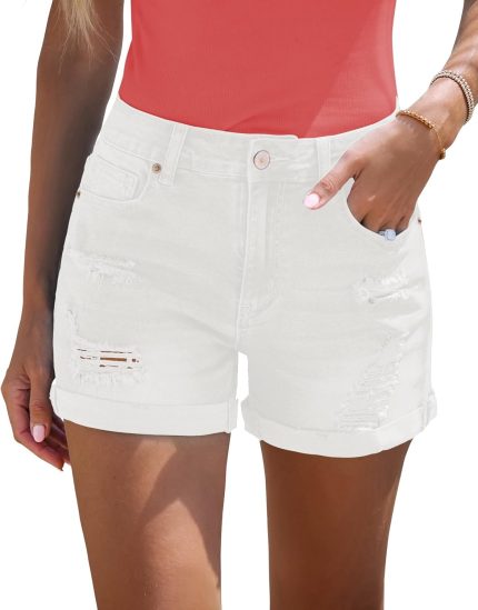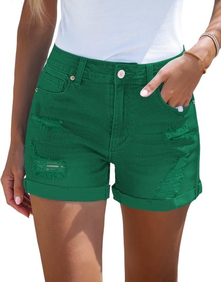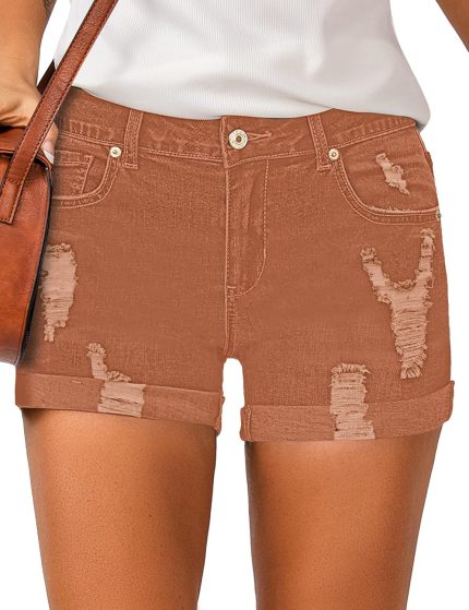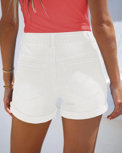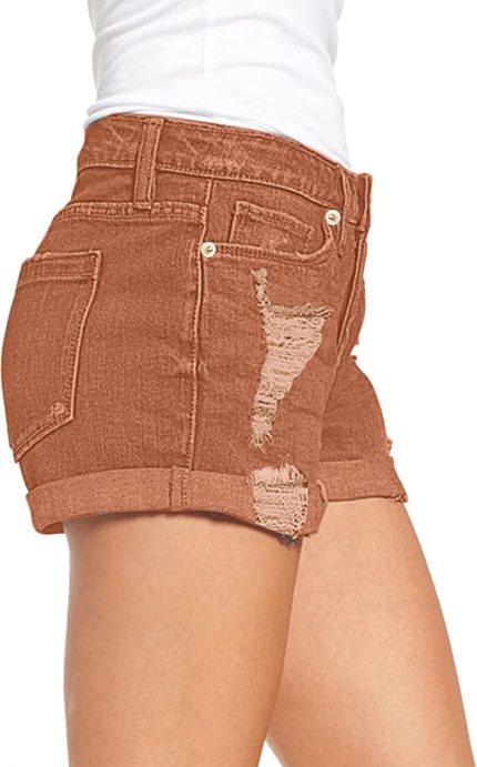 Women’s High Waisted Rolled Hem Distressed Jeans Ripped Denim Shorts