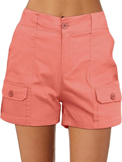 Cargo Shorts for Women Casual Summer High Waisted Chino Shorts Ribbed Elastic Waist Utility Pockets Comfy Shorts