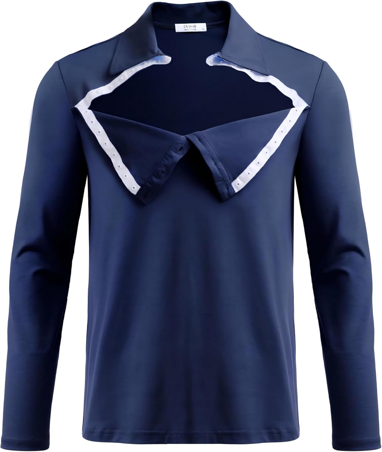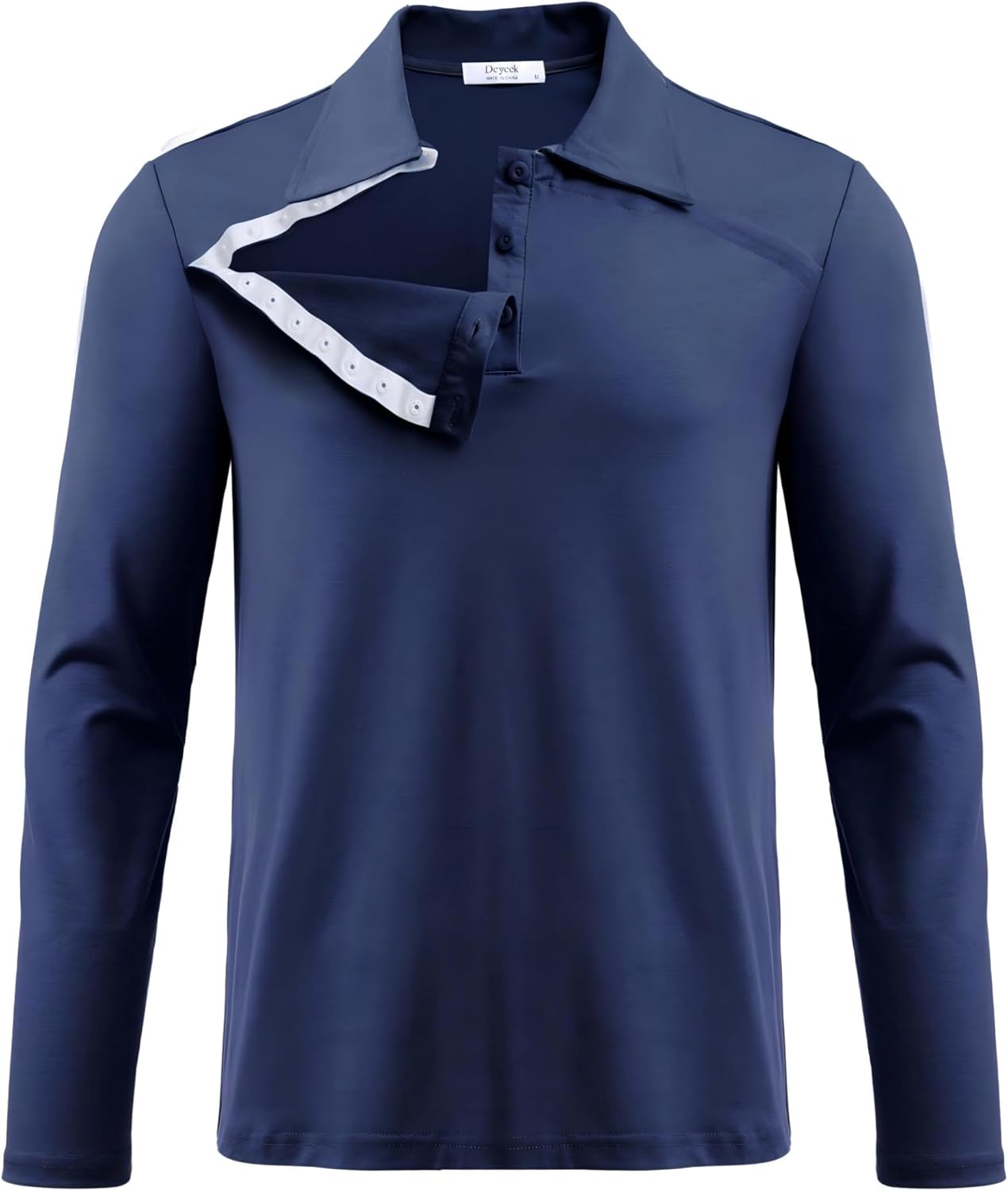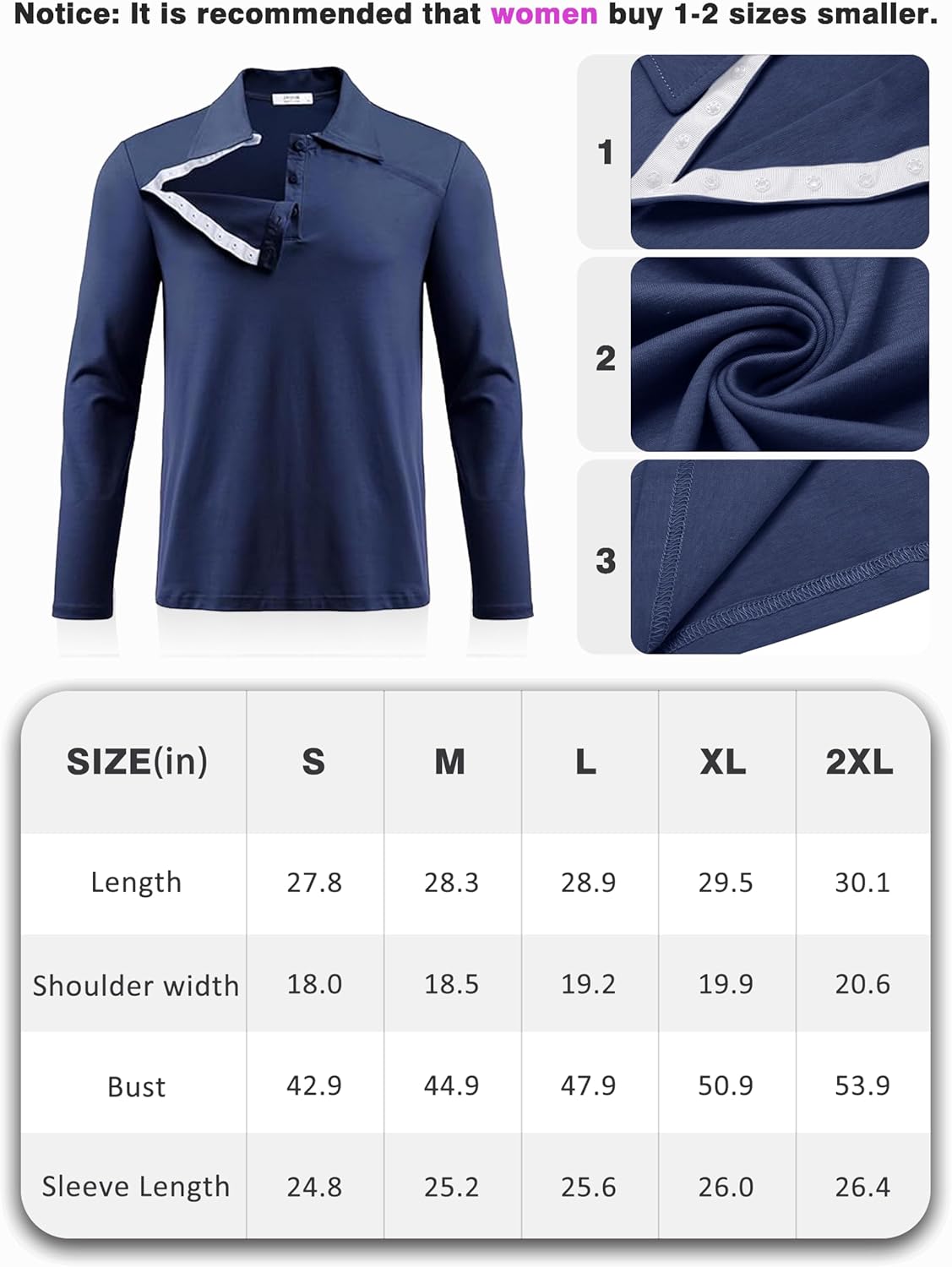 Deyeek Unisex Chemo Shirts for Port Access – Post Surgery Tear Away Long Sleeve Snap Adaptive Chemo Clothing