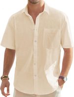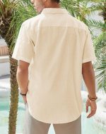 Men’s Cotton Linen Short Sleeve Shirts Casual Lightweight Button Down Shirts Vacation Beach Summer Tops with Pocket