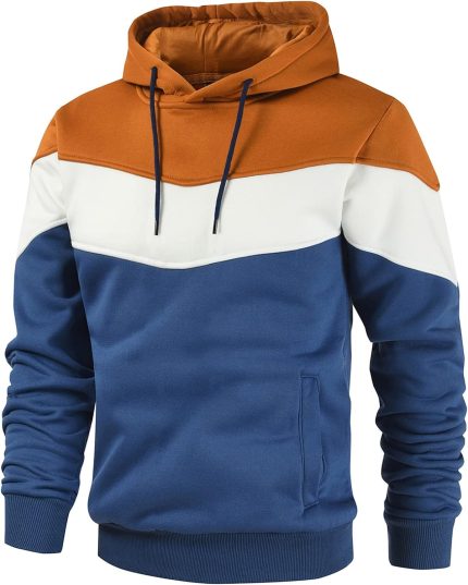 Men’s Novelty Color Block Pullover Fleece Hoodie Long Sleeve Casual Sweatshirt with Pocket