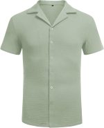 • 【Features】: This mens linen shirt have stylish lapel collar, short sleeve, full front button down, straight hemline and soft Linen fabric that you can wear from day to night