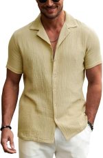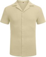 • 【Features】: This mens linen shirt have stylish lapel collar, short sleeve, full front button down, straight hemline and soft Linen fabric that you can wear from day to night