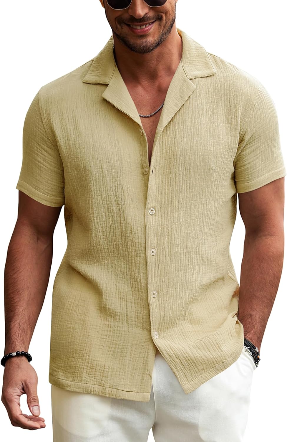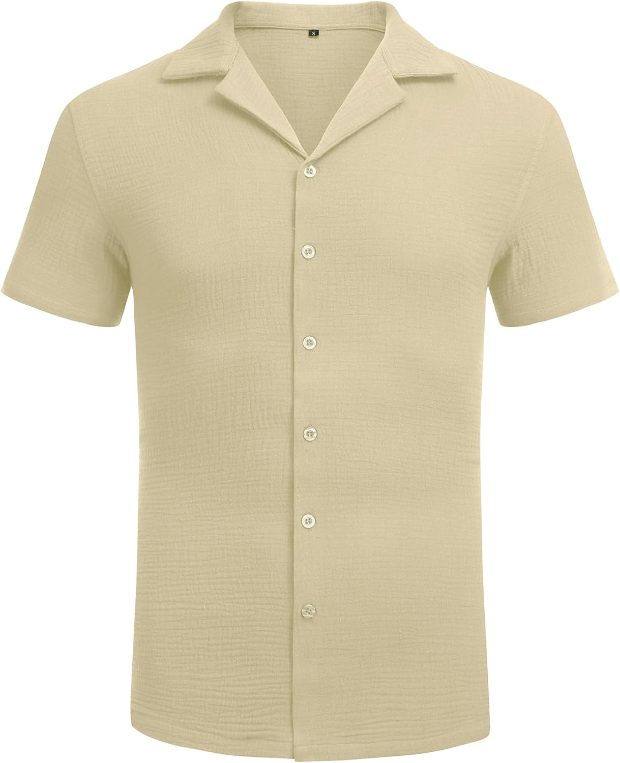 Men’s Cotton Linen Short Sleeve Shirts Casual Lightweight Button Down Shirts Vacation Beach Summer Tops with Pocket