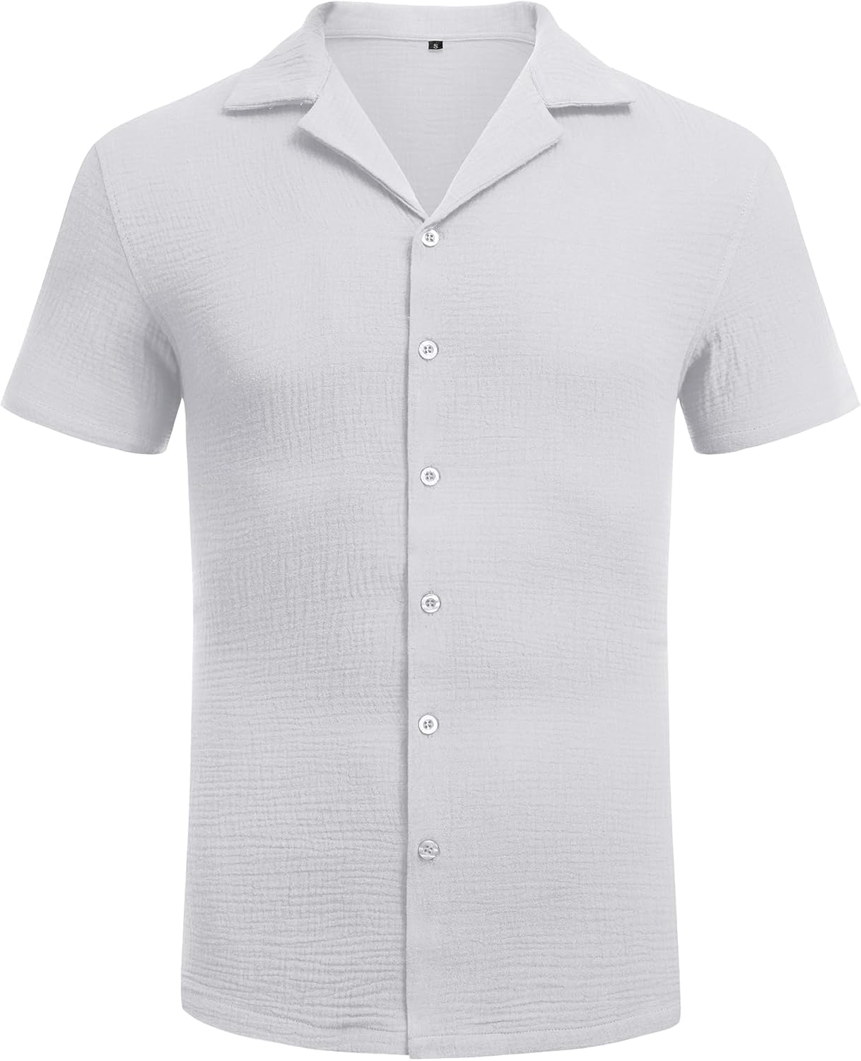 • 【Fabric】: A breezy, super soft 100% COTTON fabric makes this short sleeve mens white button down shirt. With the casual texture and classic styling, the hawaiian shirt is easy to style with shorts or your favorite denim