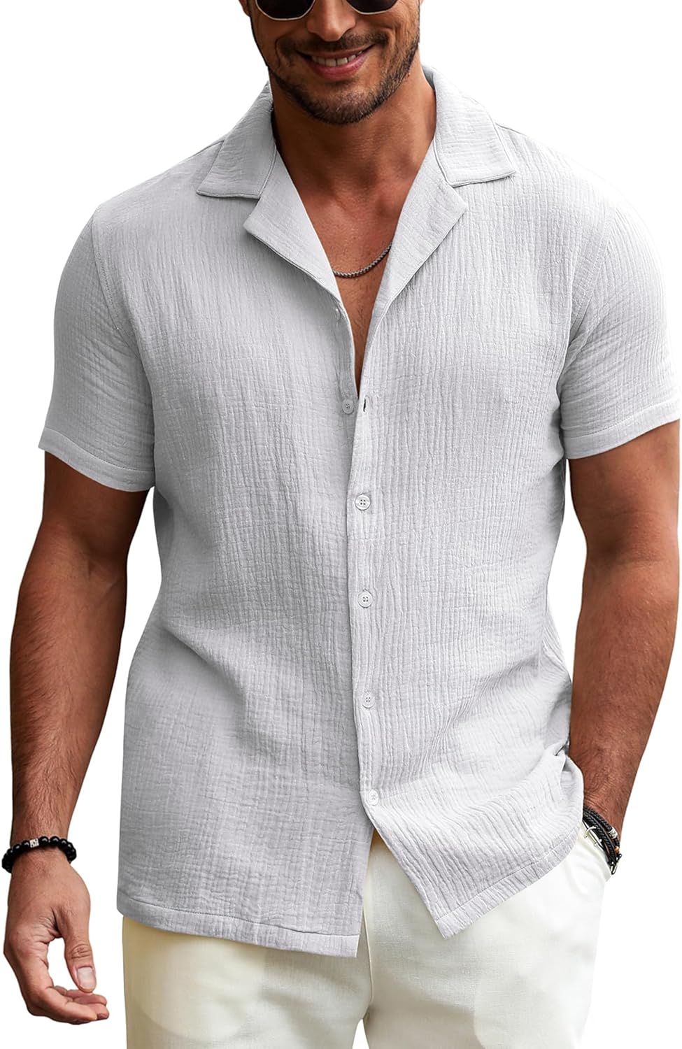 Men’s Cotton Linen Short Sleeve Shirts Casual Lightweight Button Down Shirts Vacation Beach Summer Tops with Pocket