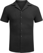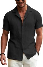 • 【Features】: This men’s black hawaiian shirt have stylish lapel collar, short sleeve, full front button down, straight hemline and soft Linen fabric that you can wear from day to night