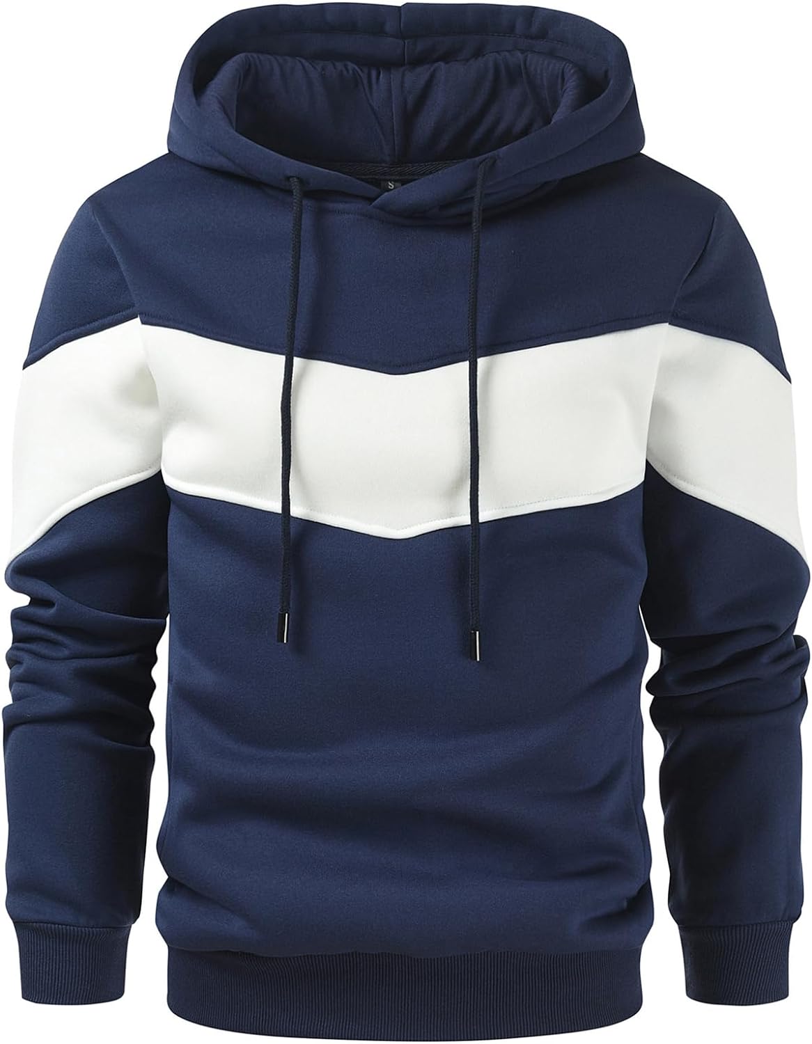 Men’s Novelty Color Block Pullover Fleece Hoodie Long Sleeve Casual Sweatshirt with Pocket