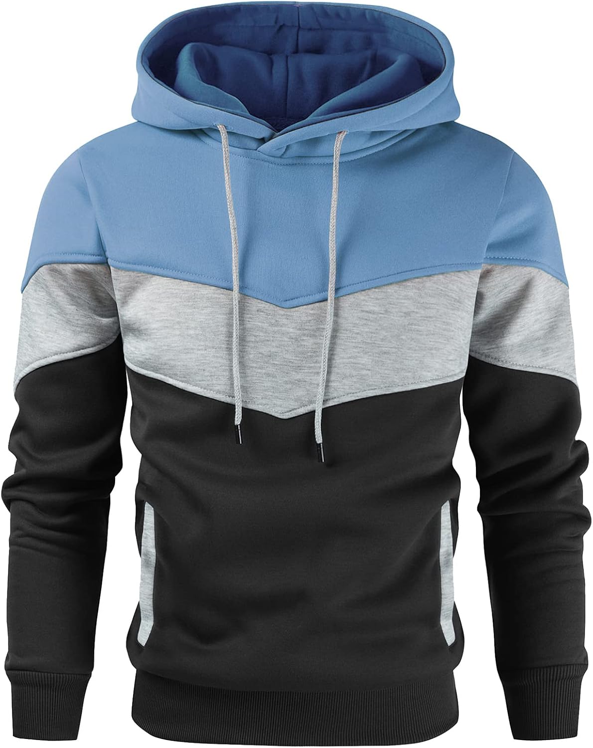 Men’s Novelty Color Block Pullover Fleece Hoodie Long Sleeve Casual Sweatshirt with Pocket