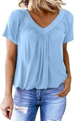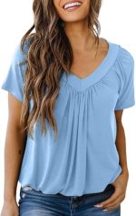Women’s Summer Tops Casual Short Sleeve Shirts Dressy Blouses Trendy Pleated Tunic
