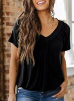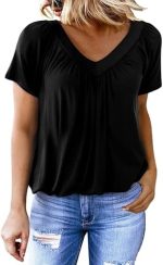 • Feature: Short Sleeve Shirts, Solid Color, Loose Fit, Basic Tunic Tops, V Neck, Casual Chic Style.