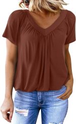 Women’s Summer Tops Casual Short Sleeve Shirts Dressy Blouses Trendy Pleated Tunic