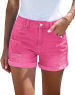 Women’s Ripped High Waisted Denim Shorts Stretchy Cuffed Hem Jean Shorts