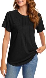 Women’s Summer Tops Casual Short Sleeve Shirts Dressy Blouses Trendy Pleated Tunic